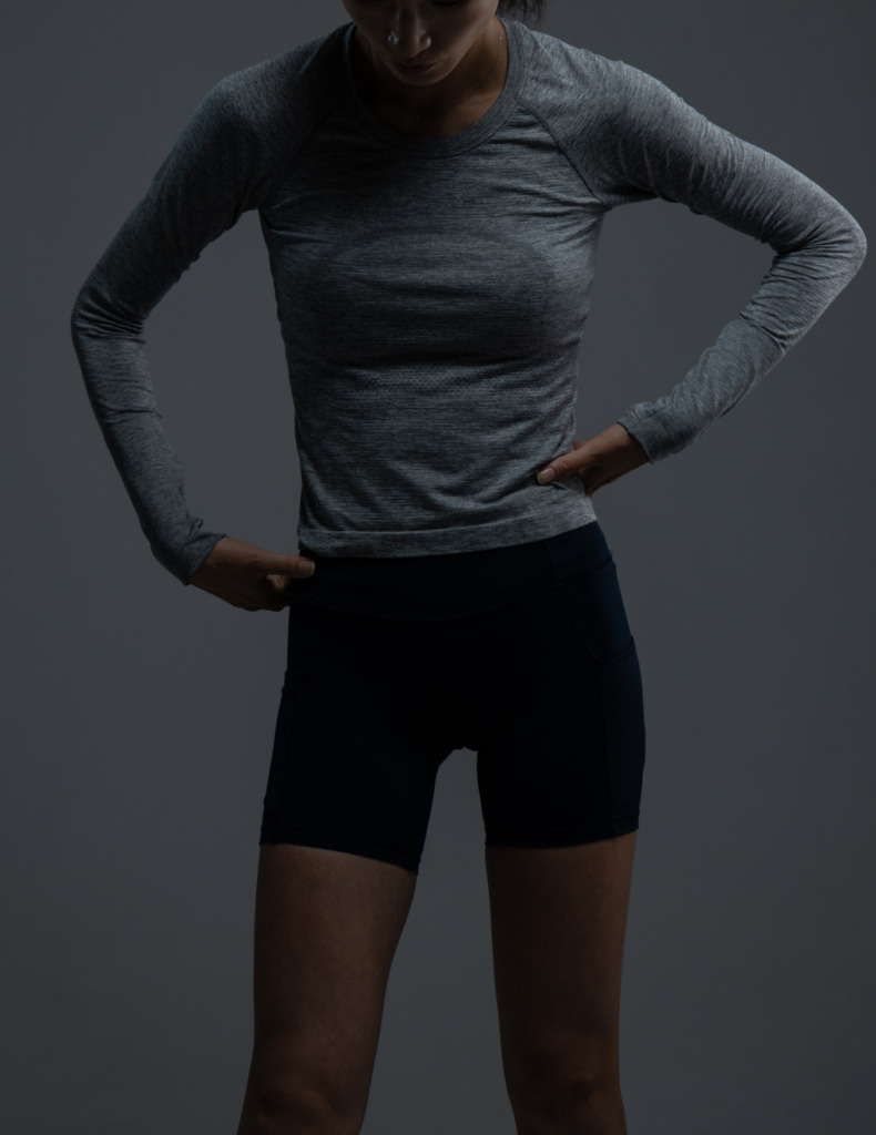 スポーツブラとレギンスを着用するランナー・真衣(まい)選手の感想