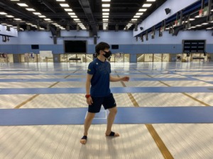スポーツブラとレギンスを着用するトランポリン・中村優希(なかむらゆうき)選手...