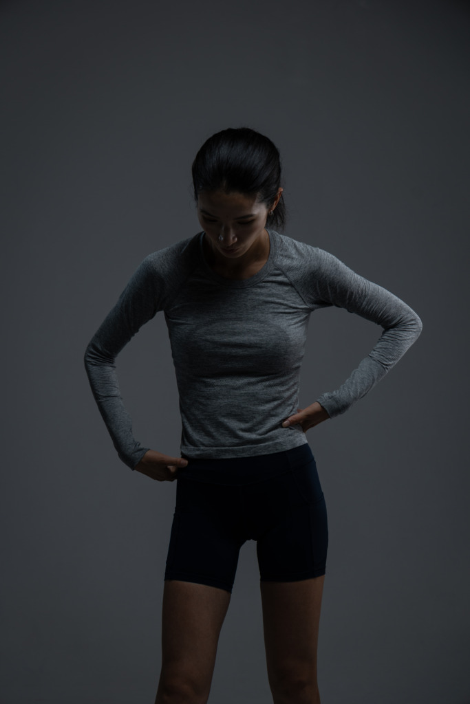 スポーツブラとレギンスを着用するランナー・真衣(まい)選手の感想